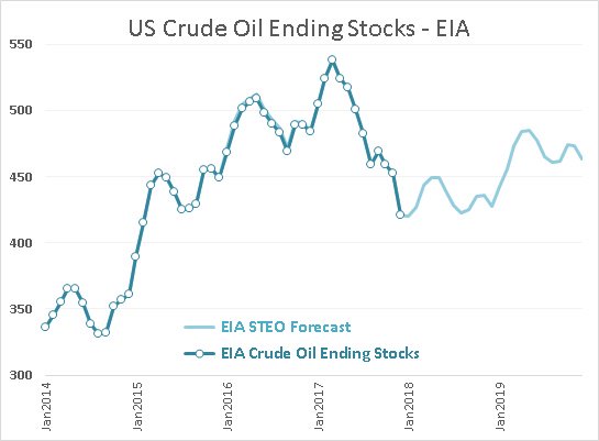 What’s interesting is trying to reconcile that the huge draws are reflected in IEA’ depiction of supply/demand balance. I know I should not inject logic into their analysis, but seems to me if supply/demand was mostly in balance the third qtr of 2017, we would not be experiencing significant draws. And even though the green line (supply) matches the yellow line, sort of, for the first half 2018, isn’t the yellow line above the green line the latter half of 2018? And that indicates oversupply? I must be chart challenged.