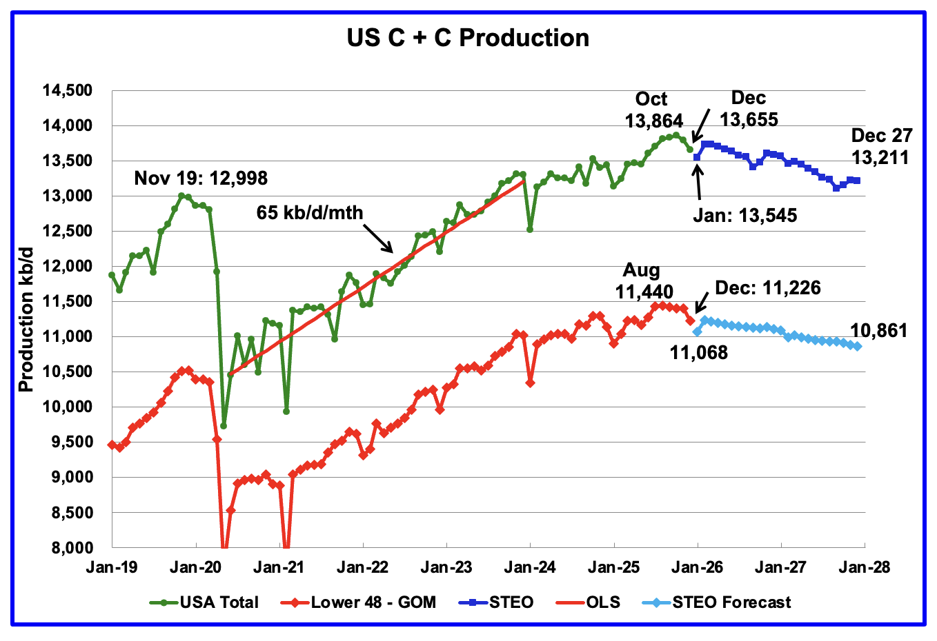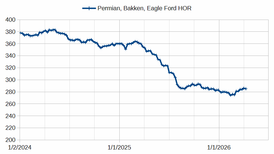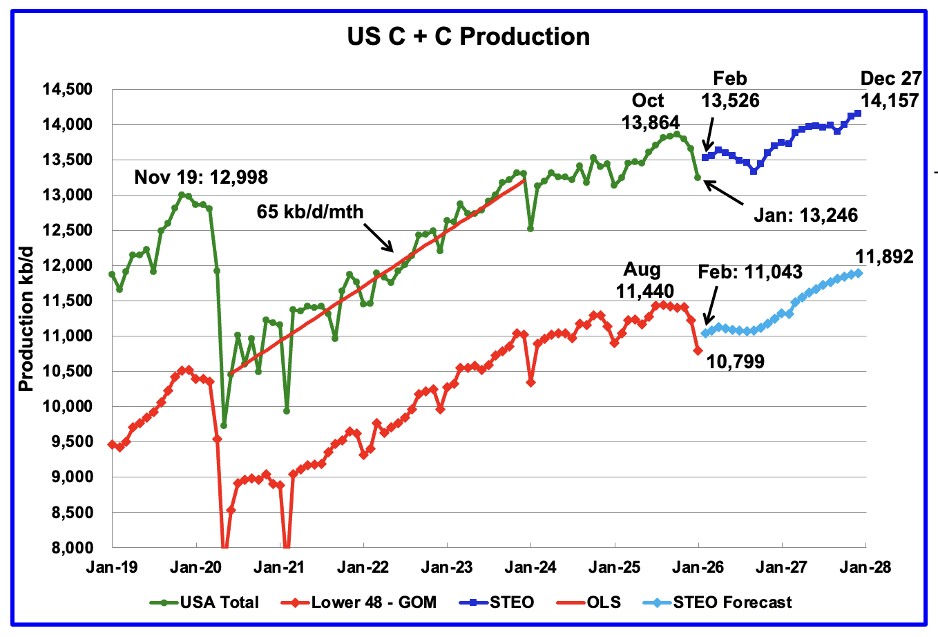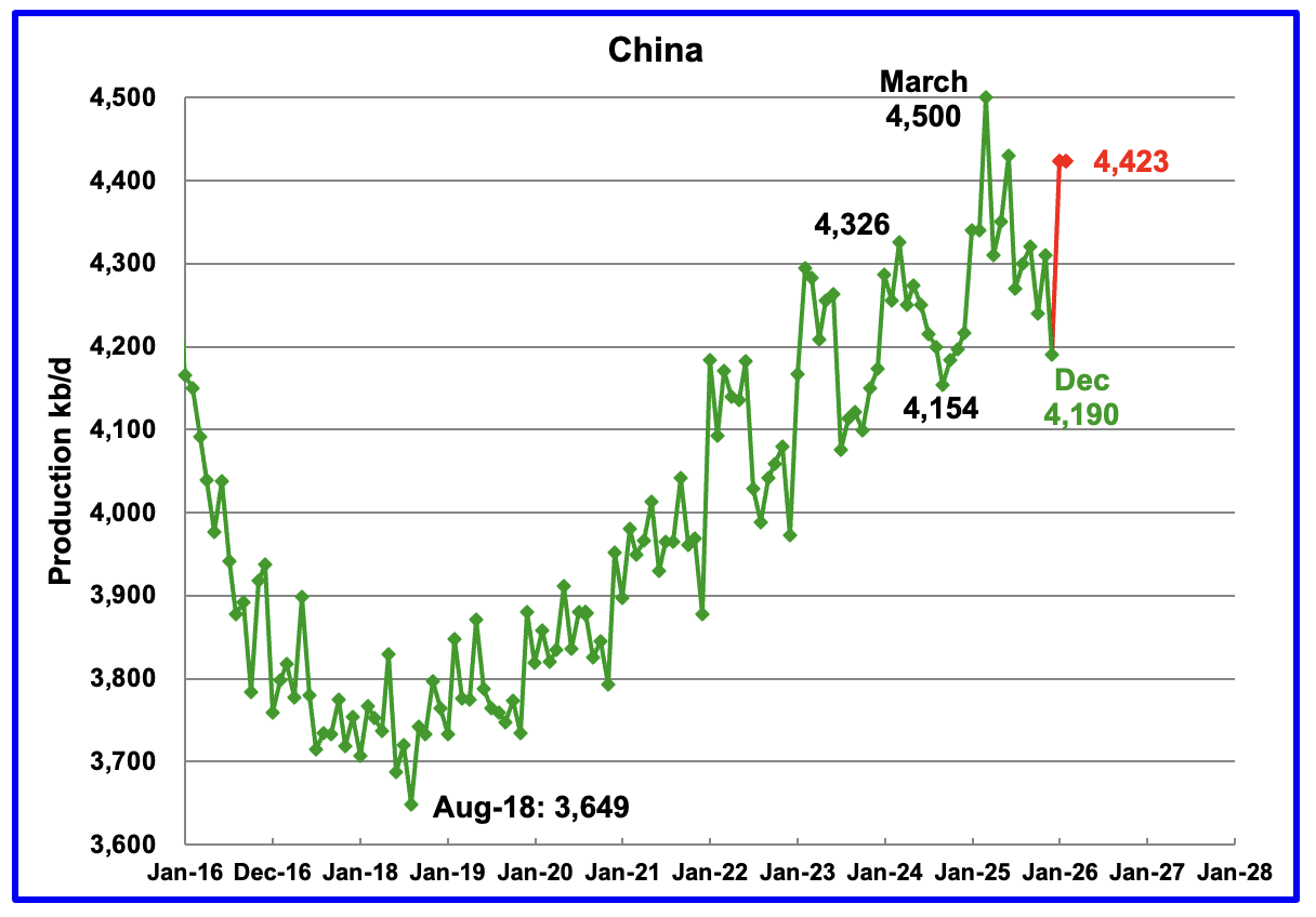 Note the large drop of 310 kb/d from March 2025 to December 2025. That appears to be a record drop over those nine months.