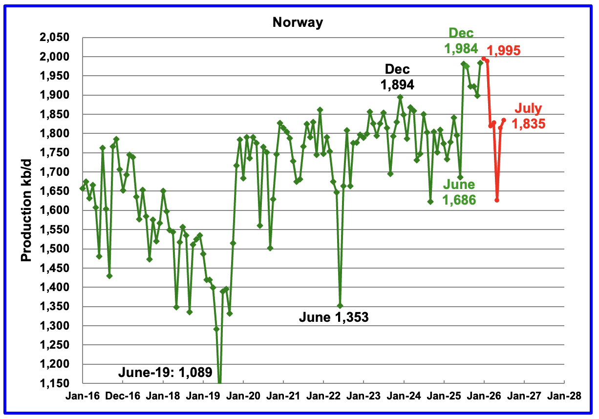 The EIA reported Norway’s December production rose by 85 kb/d 1,984 kb/d.