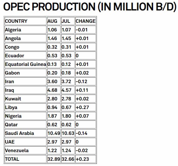 2018-09-12 OPEC, citing secondary sources, says its August oil output rose +278,000 bpd m/m to 32.56 million bpd