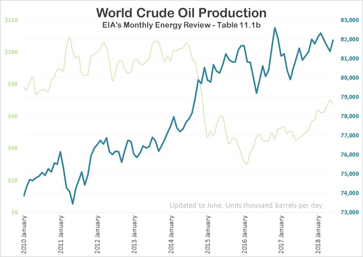 Taking the long view (past 36 years) output has increased at about 800 kb/d on average each year (linear trend on monthly EIA data from July 1982 to May 2018).