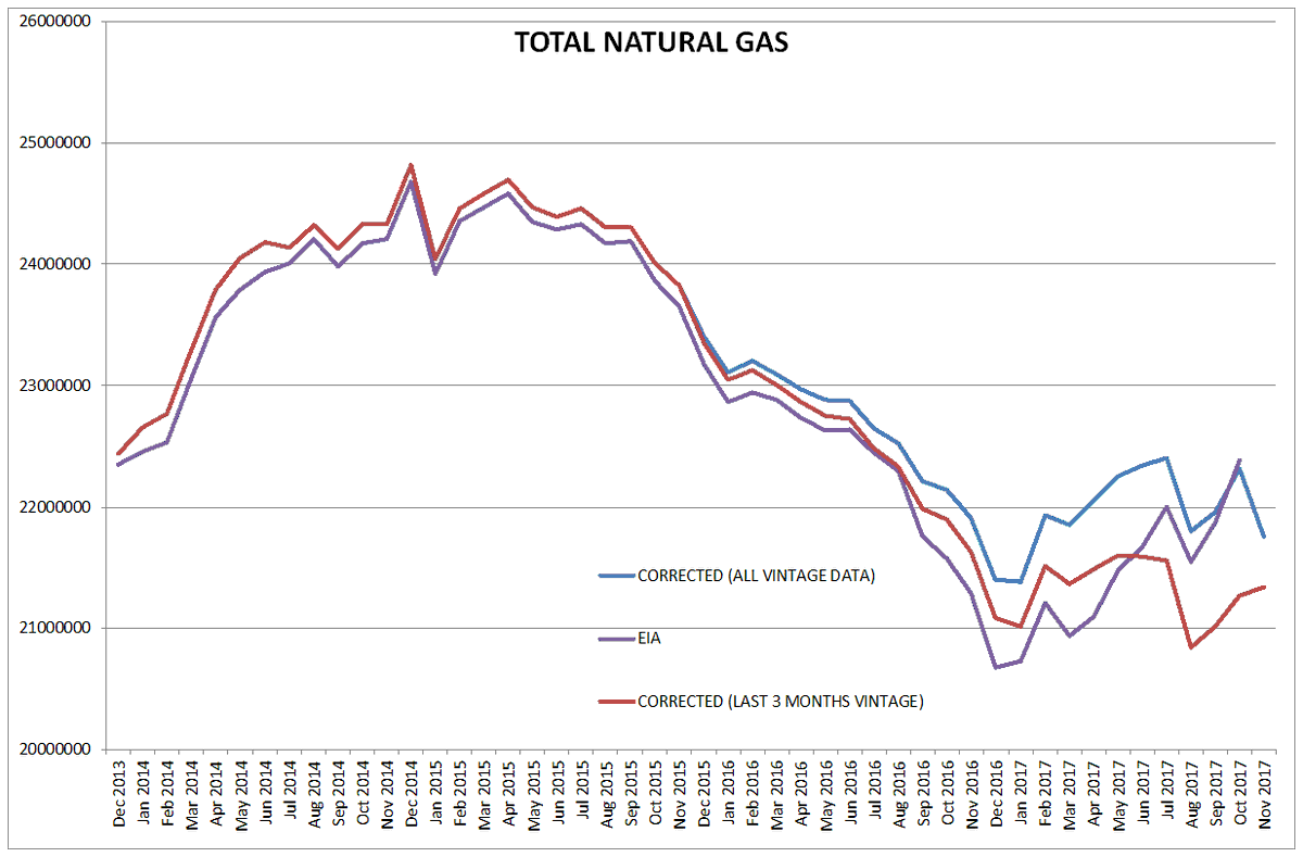Currently oil prices are about $58/b and for the past 6 months (June 2017 to Dec 2017) WTI has been rising at an annual rate of $26/b, should that rate of increase continue, WTI would be $84/b in Dec 2018. If the rate of increase falls by 50% the price would be $71/b in Dec 2018. My WAG is $77.5/b+/-$7/b for the Dec 2018 average monthly WTI oil price and an increase in US output to about 10,300+/-200 kb/d in Dec 2018. My estimate for Dec 2017 US output is 9700+/-100 kb/d.