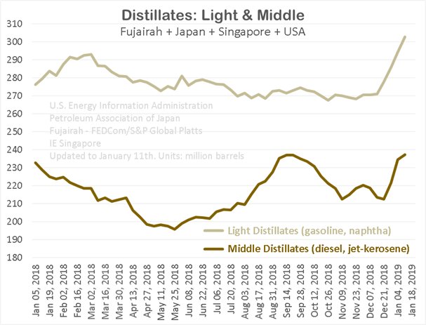 Most interesting development. If Venezuela ships oil to US, then the payments will have to go to his opposition. So, needless to say, PVSDA is over shipping to the US. But, who knows how much in payments haven’t been paid yet to PVDSA for oil already received. Citgo profits go to the opposition. Now, we are about 400 to 700k bpd short on heavy oil, and Sauds are producing and shipping less heavy. Not helping with the middle distillate situation