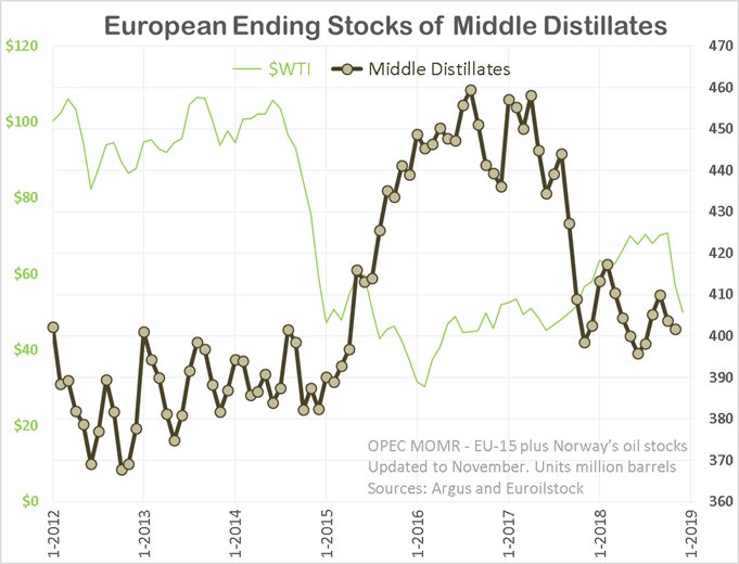 OPEC 14 production was down by 751,000 barrels per day in December. That was after November production had been revised downward by 23,000 barrels per day.