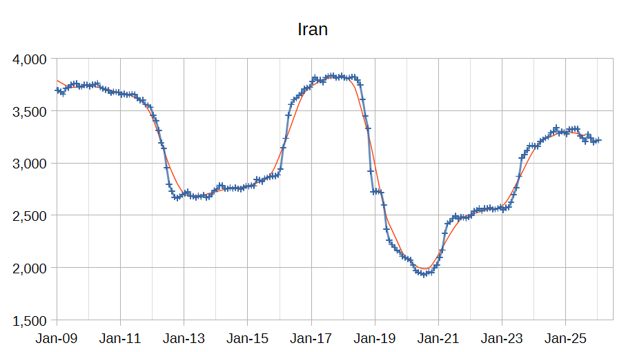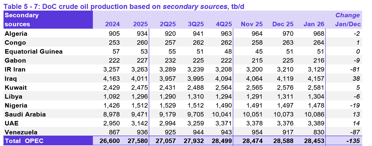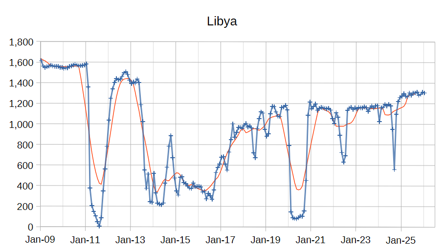 The chart above shows output from the Other 8 OPEC producers excluding the Big 4. Clearly gains in output from these nations have been stagnant since early 2025. This is the reason I focus on the Big 4 OPEC producers.