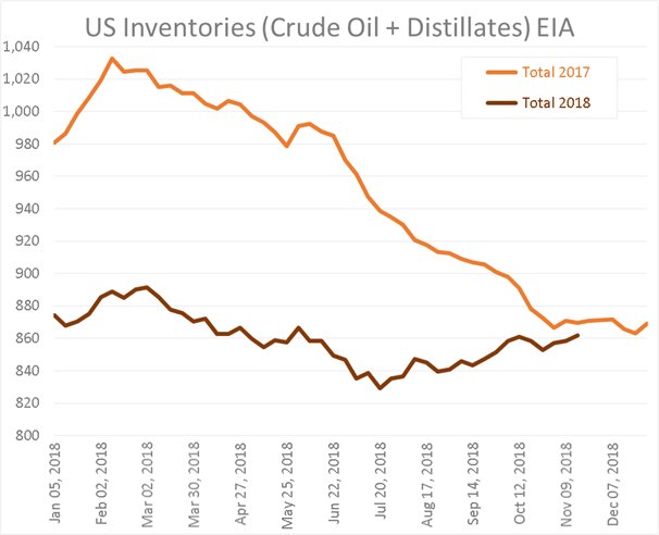 Back to $70/b by May 2019 (perhaps sooner depending on the OPEC+ decision in early December).