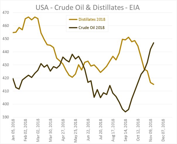 Exports are said to be down approx -900 kb/day from 2600 during H1 2018 to 1700 in Oct