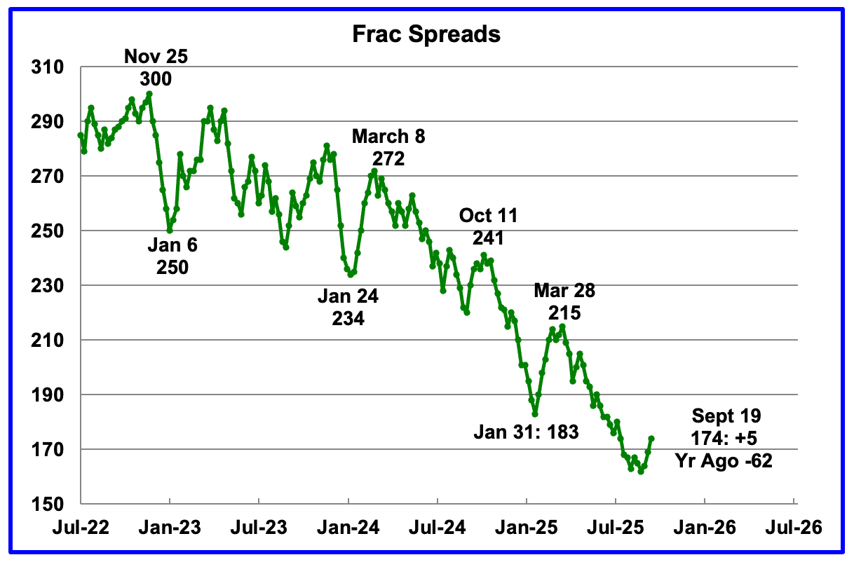 OPEC has again revised its estimate of US tight oil output lower compared to the previous month. The 2024 estimate is 10 kb/d lower. 2025 is 20 kb/d lower and 2026 is also 20 kb/d lower than the August 2025 estimate.