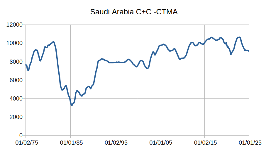 I am skeptical of 15 Mb/d for 50 years, full stop. I agree they probably could increase output, but will only believe they have the capacity when it is demonstrated. They have claimed 12.5 Mbpd capacity for many years, maybe the real sustainable capacity is 90% of that (11.25 Mbpd) so far they have never reached even 10.7 for a 12 month average based on EIA monthly data from Jan 1973 to May 2025 (see link below).