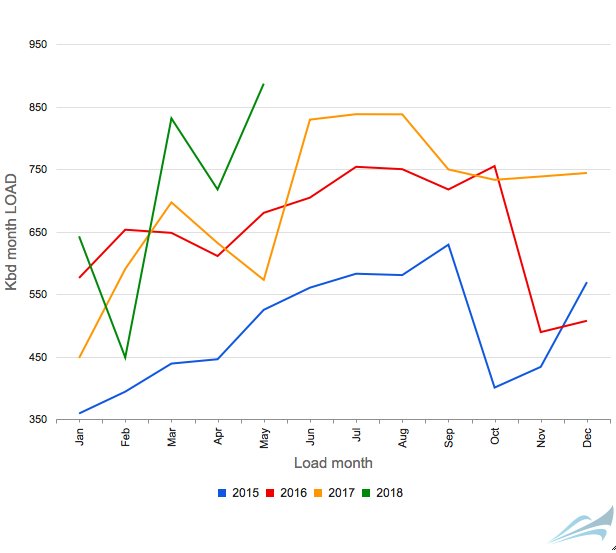 May 538 (1000 tonne per day) up +2% m/m & up 2.1% from May 2017