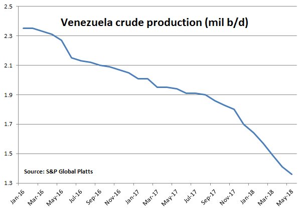 Venezuela crude oil production for May