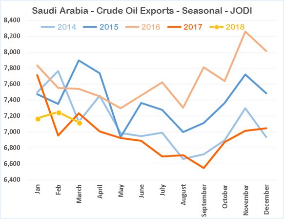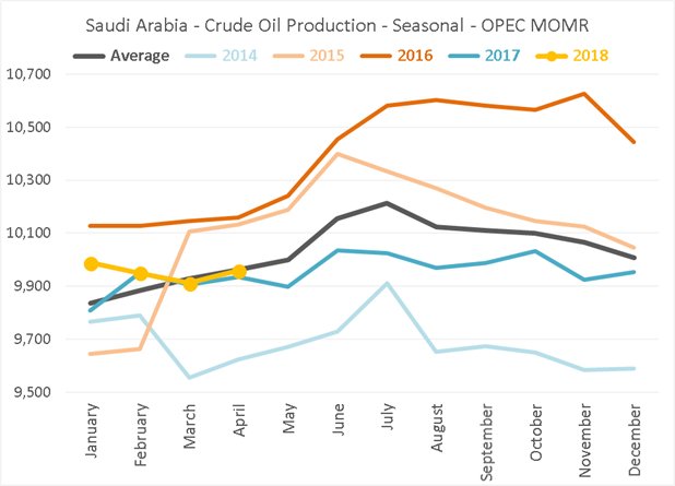 Is oil C&C or just crude, I can never follow these things? Usually Russia drops a bit of condensate production in Summer because the gas demand falls so much, they also have refinery maintenance (I think that tends to be April) and Siberian field maintenance (I think that might be later summer but could be wrong). They had a lot of fields start up in the period 2014 to 2016 and they tend to have long ramp up times – Filanovsky Phase II started in February, and there are others due this year – Trebs and Titov (final phase), Volkan, Yamalo-Nenet etc. and several more next. So they are different from Saudi. Whether they can increase production depends on the depletion rates in the mature fields, I think Rystad predicted they would struggle to maintain production over the next few years.