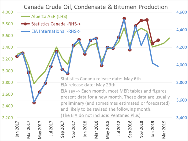 Canada was down only slightly in February according to the EIA. The Canadian Energy Board has them recovering in March but dropping big again in April.