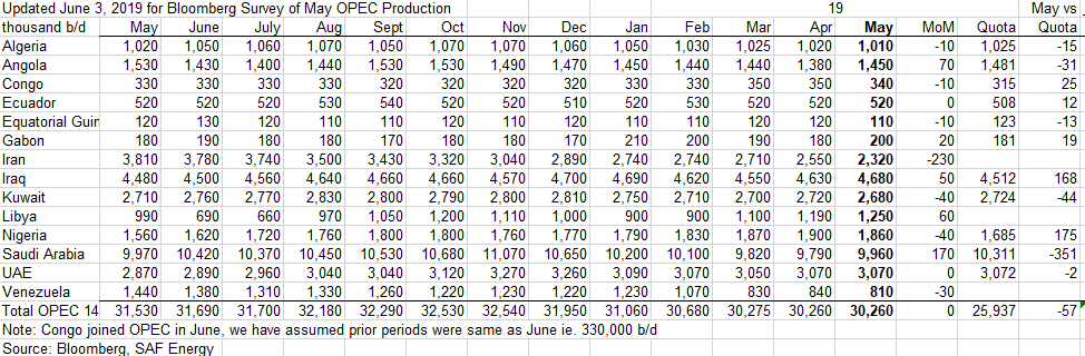 My best guess is that OPEC output will be relatively flat from 2019 to 2030 maybe up a bit or down a bit (+/-100 kb/d) from the Jan 2019 TTMA.
